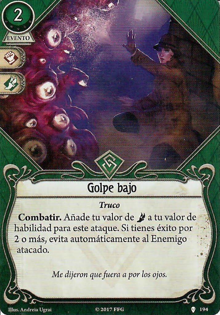 Esta percepción por parte de la comunidad tiene mucho sentido, cuando te paras a pensarlo. La acción de evitar podría no hacer más que retrasar lo inevitable (jiji) en lugar de solucionar tus problemas. Y tampoco es que en el juego base se use el stat de agilidad para mucho más. Se usaba para alguna prueba de alguna carta de encuentros, evitar y para la acción de combatir de Puñalada por la Espalda. Bueno, técnicamente también te hacía falta evitar a un enemigo para poder usar Ataque por Sorpresa, pero es una relación ligeramente menos directa.