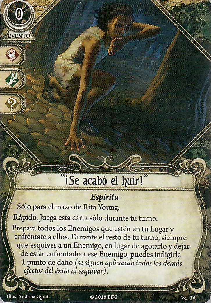 La cosa ya molaba más. A estas alturas si querías ya era fácil montarte un mazo dedicado exclusivamente a evitar y explotar tu stat de agilidad, aunque lo más normal es que esta parte del mazo fuese más «de apoyo». Con el tiempo, sin embargo, he notado que en mis grupos de juego la acción de evitar ha ido tomando más y más presencia, y que el stat de Agilidad cada es cada vez menos irrelevante.