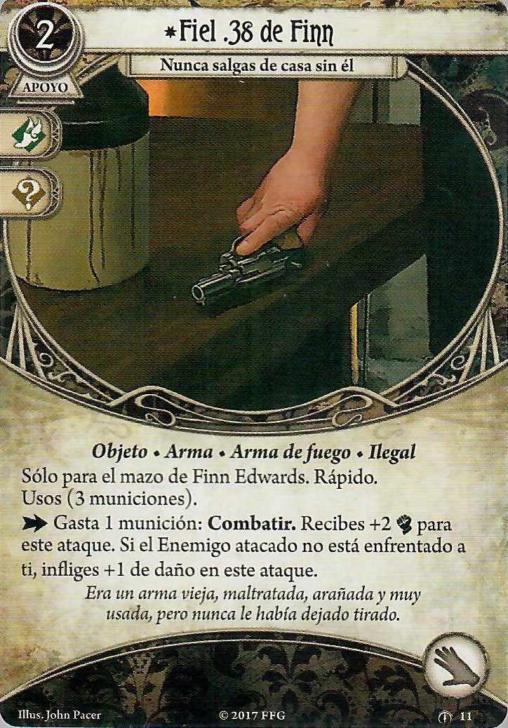 En mi cabeza un investigador con Agilidad 4 e Intelecto 4 parece óptimo. Esquivas al Enemigo minimizando el número de acciones requeridas para sacártelo de encima, y luego sacas pistas rápido rápido. Finn y Ursula cumplen esta condición, ambos con Int 4 Agi 4 y ambos muy buenos. En la práctica, no obstante, no acaba de funcionar. A la que algo sale mal tienen que combatir… y en este juego las cosas SIEMPRE acaban saliendo mal. Todas esas cosas bonitas que aparecen en tu cabeza se van al traste rápido gracias al mazo de encuentros. Me gustaría no obstante jugar una campaña de 2 investigadores con Finn y Ursula mano a mano.