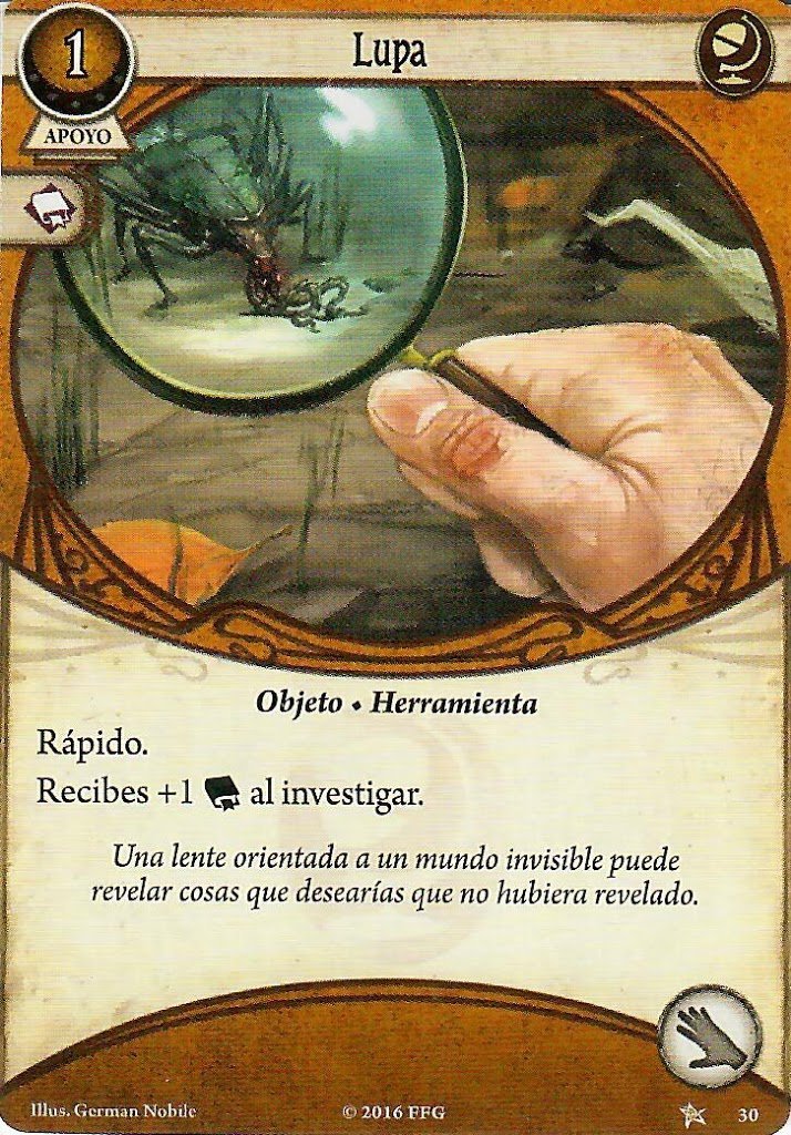 Si quieres intentarlo, te recomiendo imprimir algún proxy de algunas cartas importantes y echarle un vistazo a los mazos que hay en la sección de «Mazos en monociclo» para ver cuáles serían esas cartas. Especialmente recomendados los mazos de StartsWithTheName, aunque en el artículo solo linkee al de Roland, en la descripción del mazo podrás encontrar los del resto de los investigadores de la caja básica.