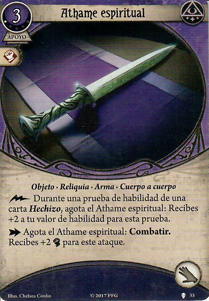 2) Cambiar el Soltar el Alma y una copia de Agallas por Athane Espiritual: Jim tiene un buen stat de voluntad, y su habilidad le ayuda mucho a superar la mayoría de las pruebas, pero es difícil decir que no a un boost de dos iconos en pruebas de hechizo reutilizable, que puede ser usado para combatir (especialmente útil para no tener que usar dos cargas de Consunción en enemigos con tres de salud) y además es una Reliquia.