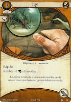 Como estamos intentando aumentar el intelecto de Jim, vamos a querer el que, en mi opinión es la mejor herramienta para ello, la Lupa. Un apoyo barato, rápido y con una mejora pasiva al investigar que nos va a venir de lujo. En un futuro si nos sobra experiencia se va a poder sustituir, pero a principios de campaña esta herramienta se hace notar. Como alternativa podríamos incluir el nuevo Kit de Huellas Dactilares, pero debido a la cantidad de recursos que necesita de primeras este mazo, yo optaría por la lupa.