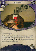En este punto solo queda un hueco para cartas, y aquí es cuando vamos a comenzar a cortar cositas. En un futuro, este mazo planea conseguir dos copias de Estatua Grotesca, por lo que una carta como Embelesado puede ser de gran ayuda, alargando un poco la longevidad de la estatua o de nuestros hechizos. Dependiendo de la campaña que vayas a jugar, las Ropas Elegantes también pueden venir muy bien al principio de la campaña. Otra buena opción podría ser Desafío, que nos permitiría ignorar el efecto de una ficha del caos especial, que puede ser de gran ayuda si usamos cartas como Premonición o Profecía Oscura.