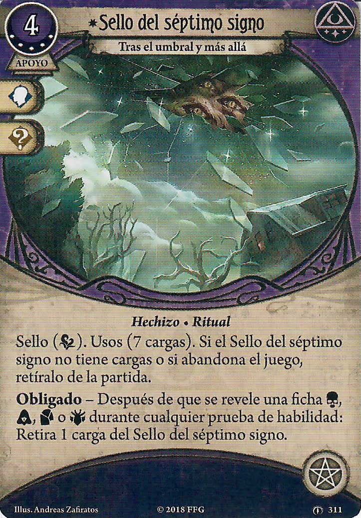 Esta última versión puede parecer aún más una amalgama que el resto… y lo es. Este tipo de mazos tienen un uso muy nicho y ultra dependiente de la composición del grupo. La idea de este mazo es mejorar lo antes posible a cartas de sellado como el Ensalmo Protector y el Sello del Séptimo Signo para facilitarle la vida a tu equipo. Incluso puedes llevar el Libro de las Sombras mejorado para tener un hueco de Arcano más y poder recargar el Sello del Séptimo Signo. Puede parecer un mazo extraño (que, de nuevo, lo es) pero puede encontrar su hueco en algún equipo y tener un efecto interesante en la partida.