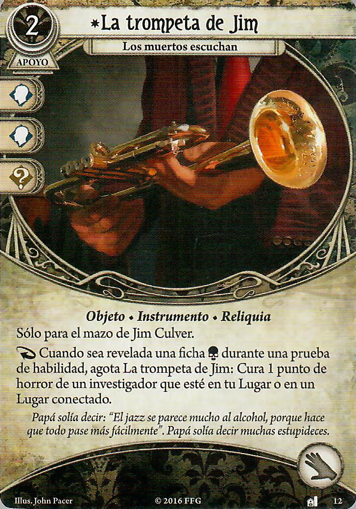 ¿Y qué ventaja podríamos tener jugando a Jim? Junto al acceso a 5 cartas de nivel 0 de otras clases, Jim cuenta siempre con su grande y duro instrumento (juro que este es el último innuendo que habrá en este artículo… bueno no, uno más). Y es que, por si no os habíais dado cuenta, ¡la trompeta de Jim también es una Reliquia!