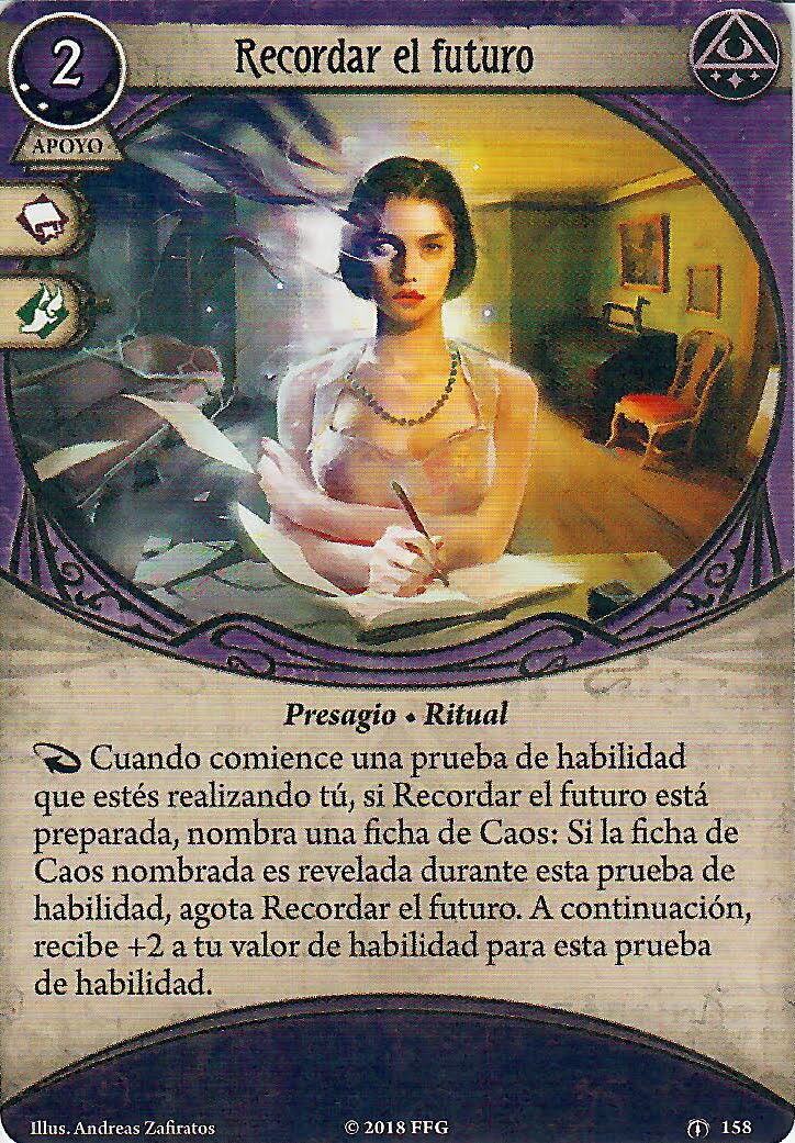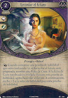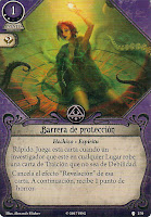 Vale, inmediatamente, Barrera de Protección. Sin duda alguna uno de los eventos más constantemente útil del juego, librarse de una carta de traición pagando un recurso y un punto de horror es poca broma y debería considerarse seriamente en cualquier mazo en el que pueda ser incluida. Con este mazo vamos a intentar conseguir dos copias de Recordar el Futuro lo más rápido posible, así que tanto Premonición como Profecía Oscura son cartas que deberíamos plantearnos seriamente incluir.