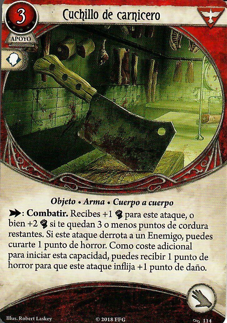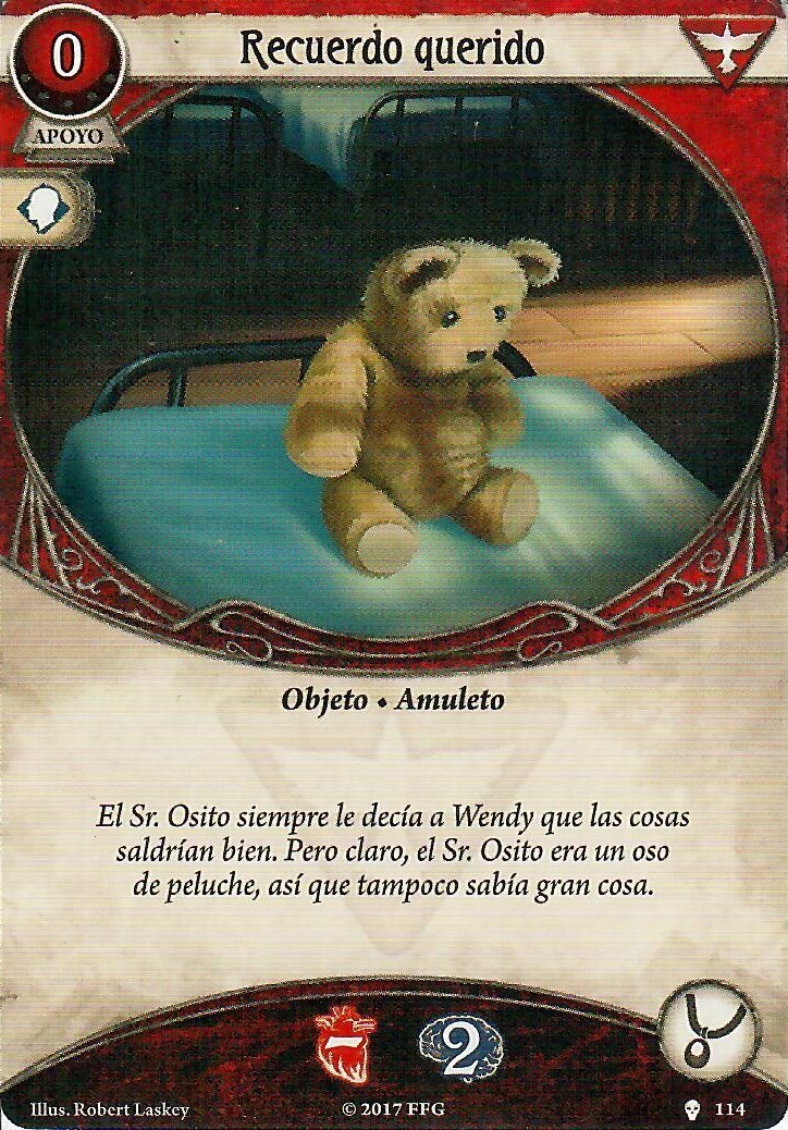 Su apoyo es fácil de analizar, es el mejor cojín de daño y horror para este investigador. A muchos les daría igual que se le pueda asignar daño y horror directo a esta carta, pero la expresión de calma momentánea del jugador cuando juega esta carta es más que notable. Y esque no solo te mantiene en la partida mucho más de lo que mereces, sino que además te hace sentirte increíblemente seguro estando a un punto de vida y cordura.