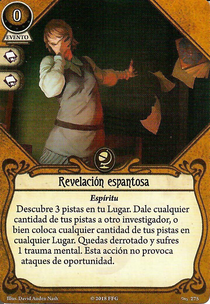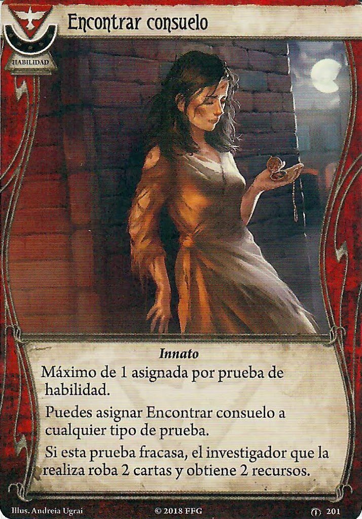 Robar cartas con Calvin puede dar miedete hacia el final de una campaña, cuando tengas tal acumulación de traumas que estés al borde de la muerte en cada escenario… Pero mientras tanto, estás jugando con «una debilidad menos»!! Bieeen!! Como habréis visto, Calvin tiene unas opciones de robo muy muy buenas, entre las que destacan Apurando, Encontrar Consuelo y Resistir Juntos. Pero si creéis que vuestro mazo necesita unas pocas herramientas más para aguantar en la partida, hay un par de cartas de Espíritu que os podrían ir bien.