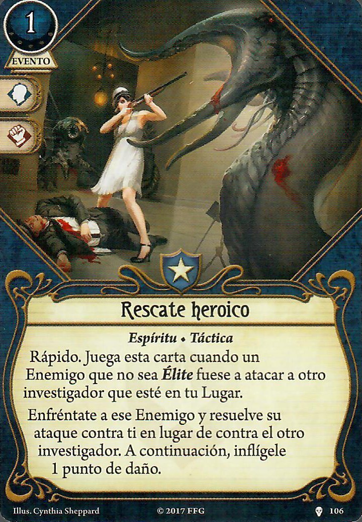 Rescate Heroico por si solo podría dejarte en una situación muy precaria si no tienes ningún modo de derrotar o evitar al enemigo, pero junto a Mano a Mano puedes ser capaz de: ahorrarle una toña a un compañero, llevártela tú (mejorando en el proceso), desenfrentar a un compañero de un enemigo y hacer un total de 2 puntos de daño automático. Vale que no es el combo más potente, pero caray, no está mal por un total de dos cartas y una acción.