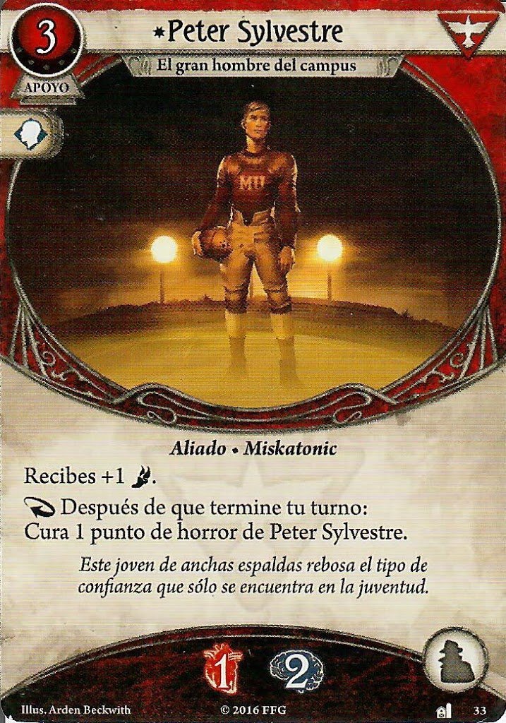 Pues mira que lo tenía en mente todo el rato, se me pasó completamente jaja. Cinco de Pentagramas me encanta en Calvin, es una carta prácticamente hecha para él, aunque Anna Kaslow no me acaba de convencer. Si bien tener dos puntos más de vida y cordura en Calvin es la hostia, para mi estilo de juego prefiero tener al amigo Peter ocupando el hueco de aliado.