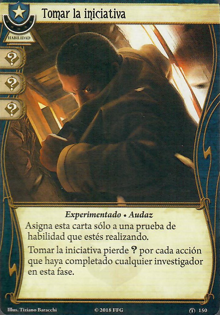 Más o menos por esas mismas razones voy a incluir Tomar la Iniciativa. Es una muy buena carta que asignar durante la fase de Mitos, donde somos muy flojos. Pero además, nos ayudará con esas pruebas en las que vamos justitos y con la prueba de recursos de Malasombra. Hay muchas más opciones útiles en este mazo. Golpe Brutal, Reacción Rápida, Dominar, Ímpetu, Inquebrantable… Como ya me estoy quedando sin espacio en el mazo y sin experiencia que gastar, voy a añadir una sola copia de una carta diver: Imitador. La utilidad de esta carta dependerá muchísimo de vuestro equipo. La ventaja de Malasombra es que como es mediocre en todo, si alguno de vuestros compañeros se especializa en algo, puede aprovecharse de los iconazos que suelten ellos. O incluso de los suyos propios nuestras cartas de habilidad están muy bien, repetirlas siempre es buena opción.