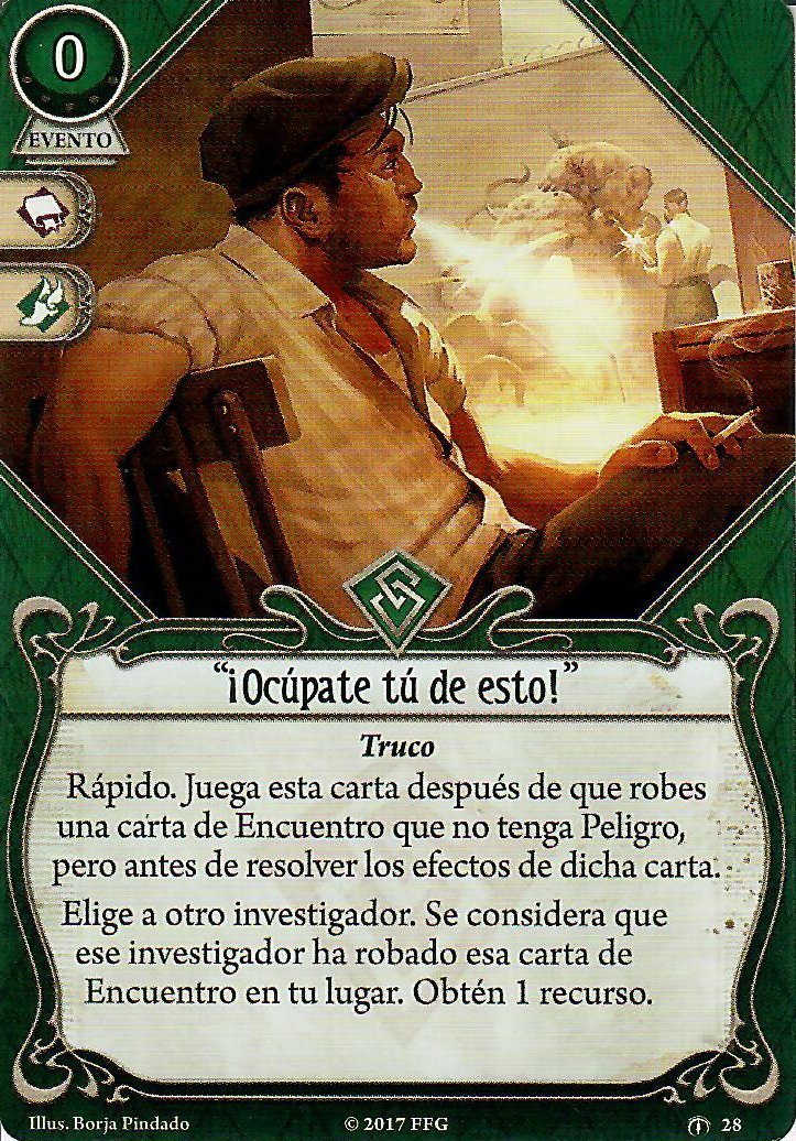 Para el Contrapuñetazo, francamente no me importa perder un objetivo potencial de los Guantes de Boxeo a cambio de cualquiera de las últimas cartas. Dominar ayudaría mucho a asegurar alguna prueba de combate y robar carta. «¡Ocúpate tú de esto!» sería la mejor opción para protejerse en la fase de mitos, con el beneficio de que es un evento para el Cristalizador y que te da un recurso. En Inquebrantable tendríamos una mezcla de ambas. Muy buena para ambos casos, pero ni robaríamos carta ni recurso.