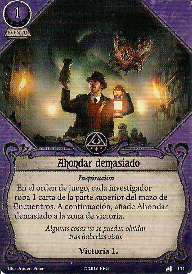 Poca cosa se puede añadir al respecto, para darle cariño a los gules cualquier cartita que haga daño te viene bien, y si lo que quieres es potenciar tu carta personal bien puedes convertirte en una turbina de puntos de victoria y añadir a tu mazo dos «ahondar demasiado» con «versátil»; potencialmente añadiendo hasta 3 puntos de experiencia por escenario, que es algo muy loco.