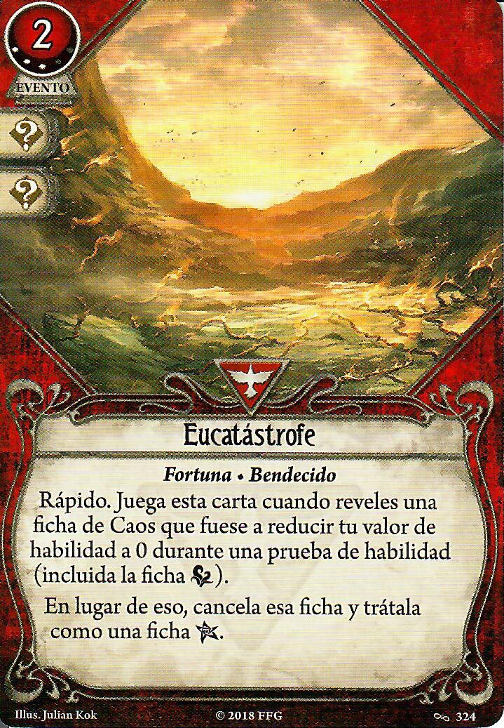 - Con «Eucatástrofe» puedes sacar símbolos arcanos cuando te apetezca, siempre que la ficha que reveles reduzca tu valor de habilidad a 0 (esto se consigue fácil investigando, o haciendo pruebas de voluntad, que con un -2 o peor te vale).