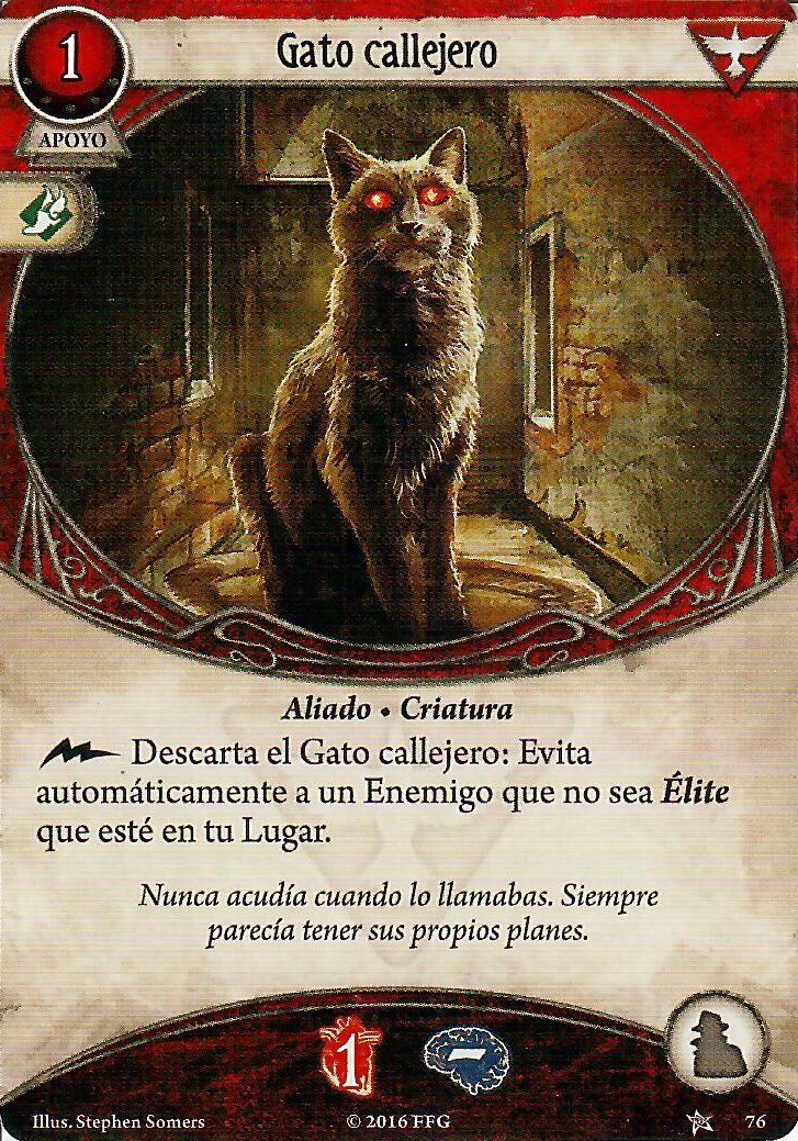 Muchas gracias por el artículo Uli! Está genial!! Y muy de acuerdo en las puntuaciones. Un pequeño pero: llevé a Patrice en el último blob que jugamos y por lo que me estuve estudiando NO puedes usar el gato callejero para evitar a tu debilidad cuando la tienes en mano. El observador te pide «tener éxito» en la prueba para descartarlo, si haces un evitar automático no hay prueba y por tanto no hay éxito. Los otros gatos sí que valdrían porque te dan éxito en la prueba.