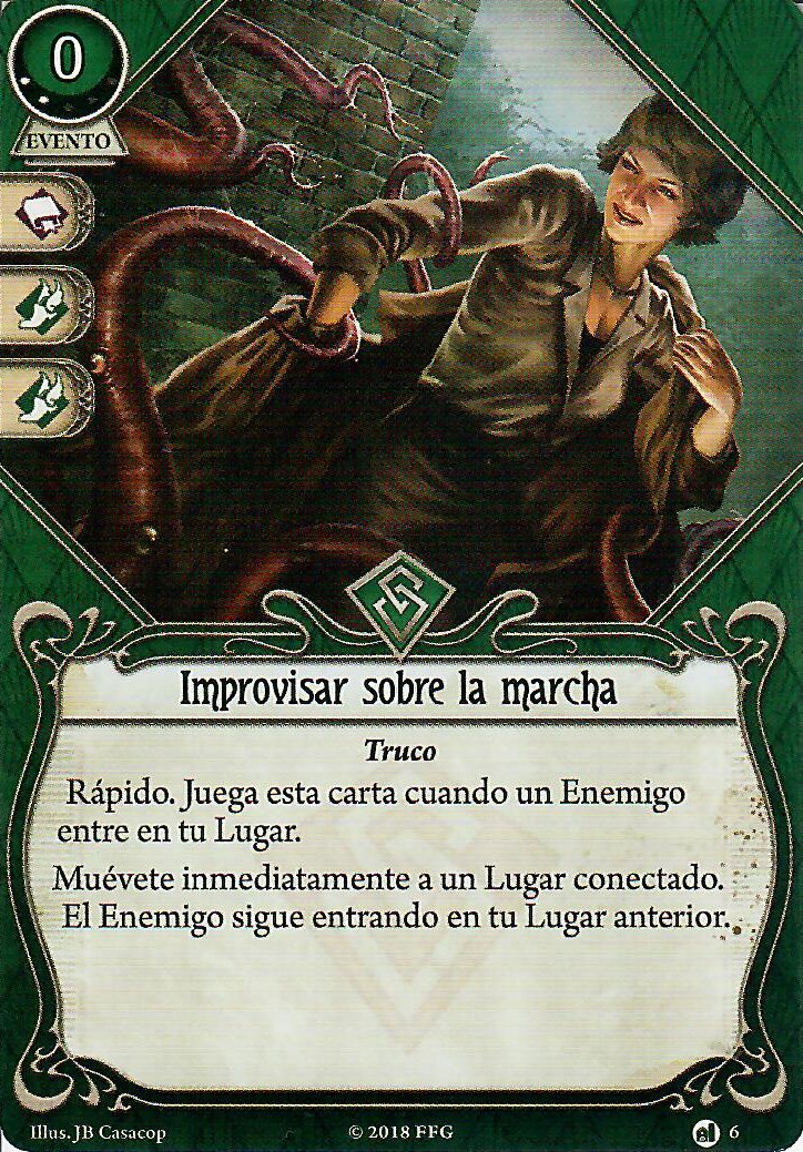 Para » ¡Se acabó el huir!» no tengo ninguna recomendación más que la descartéis si tenéis la oportunidad, respecto a los encapuchados se me ocurre ofreceros como idea que tengáis a mano «Improvisar sobre la marcha» para largaros a un lugar conectado antes de que se os enfrenten y tener un poco de tiempo para reaccionar (Rita puede llevarlo porque es un truco), o bien el «viejo fusil de caza» para que les metáis tres puntazos de daño entre pecho y espalda y los despachéis de un plumazo (o un balazo en este caso).