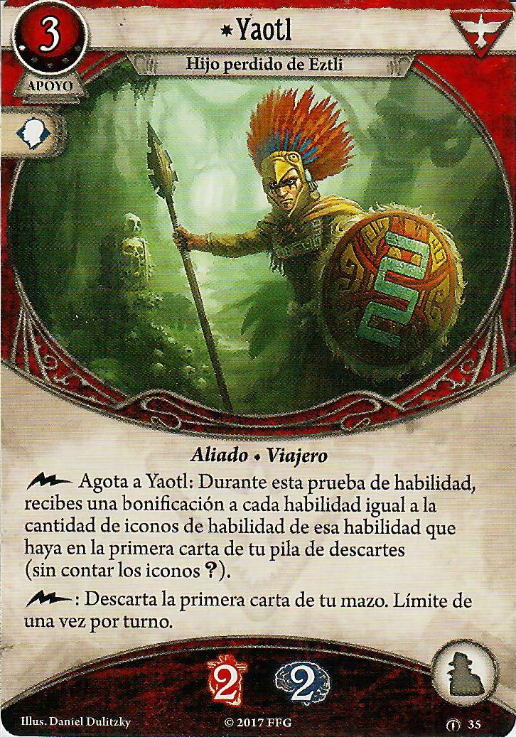 Cualquier investigador puede hacerse cargo de los ricos gules, pero aún así puede que ni hiciera falta ya que Yorick está diseñado para quebrar espaldas a palazos. Es verdad que mientras estén enfrentados a ti no puedes recuperar cartas de tu pila de descartes pero lo más probable es que no duren ni un turno en mesa, y tampoco es TAN clave poder usar esa capacidad.