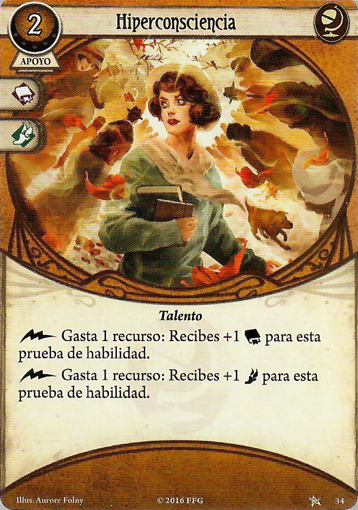 Hiperconsciencia es una carta que metería al principio y quitaría muy rápido en cuanto tenga experiencia y la razón la veréis ahora, nos puede venir muy bien para gastar esos recursos en darnos un +1 a una prueba, pero es muy pobre y muy costoso, por eso la mejor opción, que es la siguiente, también esta en la lista de tabues.