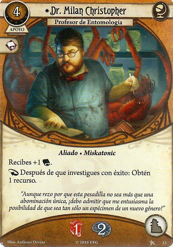 Buen articulo, acabo de aterrizar en el este maravilloso juego, y estoy precisamente probando mazos con este investigador , se me ha planteado un dilema con el apoyo del Dr. Milan Christopher y la debilidad La maldición de Rex , la debilidad dice que cuando fuese a tener exito en una prueba de habilidad devuelva la ficha del caos y sacar otra… esto activa la habilidad del Dr. Milan ? ,