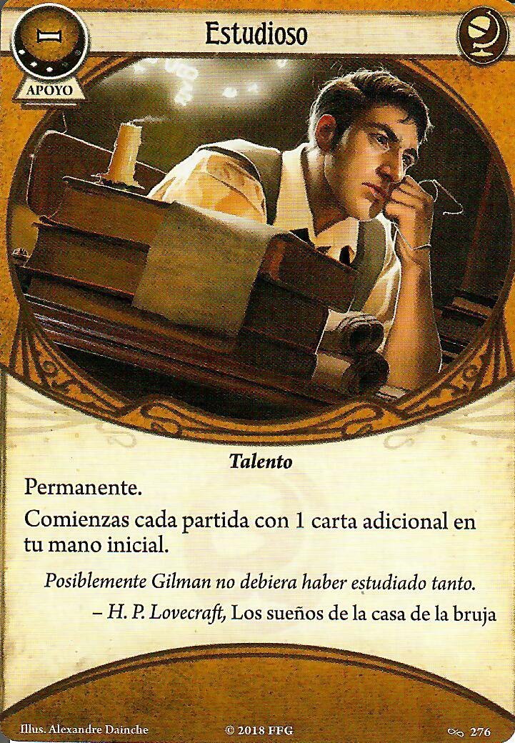 Estudioso me tiene enamorado, empezar la partida con 7 cartas en tu mano (Mientras tengamos dos compradas) puede ser muy bueno para encontrar esas cartas que necesitas, muy útil si además has incluido cartas tarot en tu mazo, además la imagen es genial, esa cara de ¿Me habré dejado la calefacción encendida?