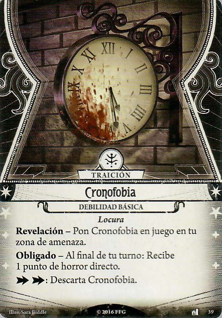 Otra parejita del rollo de Psicosis e Hipocondría. En este caso igual que en los otros con dos acciones te las quitas de en medio, pero si te salen en el momento propicio, pueden echar por tierra una partida repleta de buenas decisiones. Aunque sólo en una de ellas aparezca la imagen de un reloj, ambas son una cuenta atrás por tu vida, ya que hacen daño y horror directo.