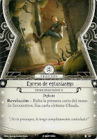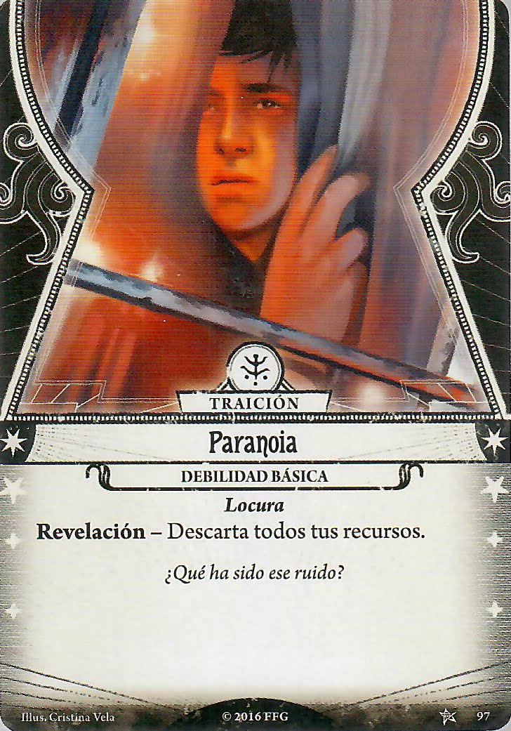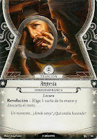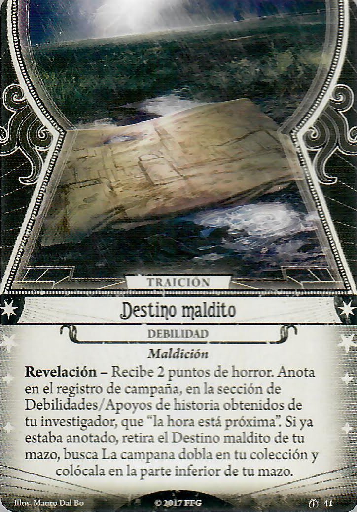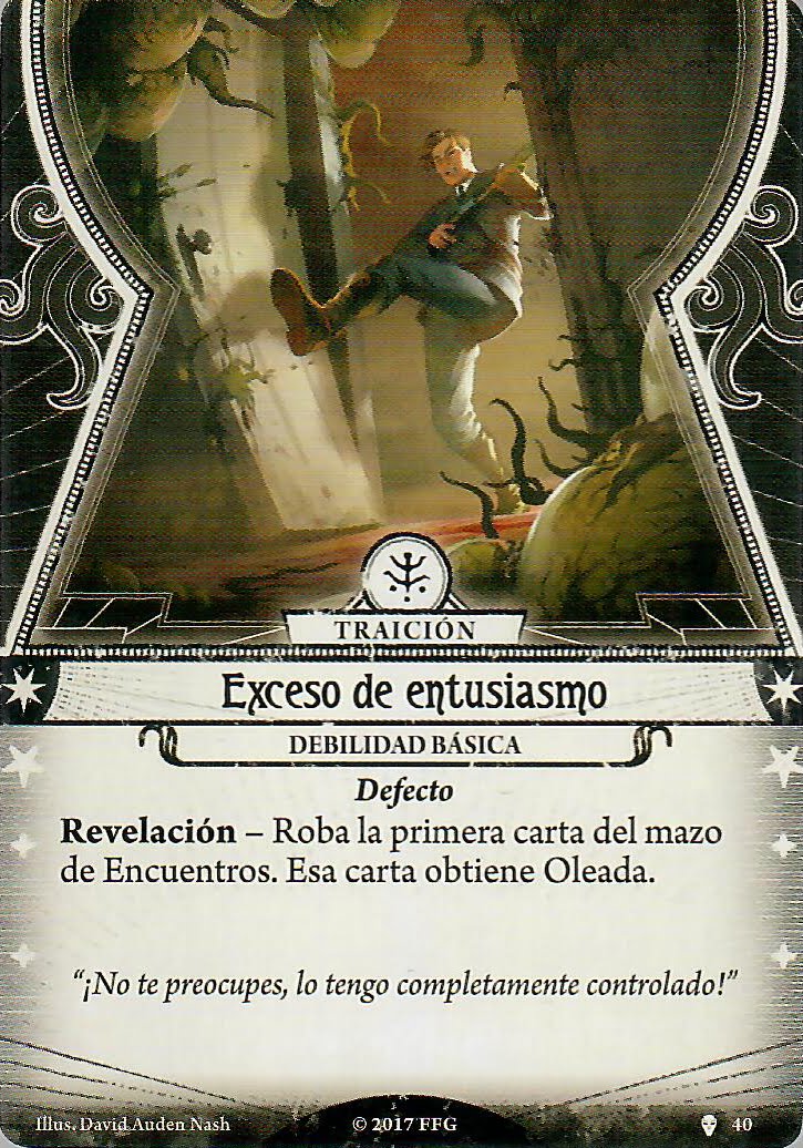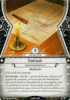 ¿En serio era necesaria esta carta? Para mi de lejos la peor de las debilidades, ya no sólo por el hecho de robar dos cartas del mazo de encuentros, sino por las posibles consecuencias derivadas. Dos cartas mal robadas, tipo Antiguos males, pueden precipitar el desarrollo de los acontecimientos y pasar de tener una partida controlada a la histeria colectiva y tener que hacer todo deprisa y corriendo. Lo se por experiencia.