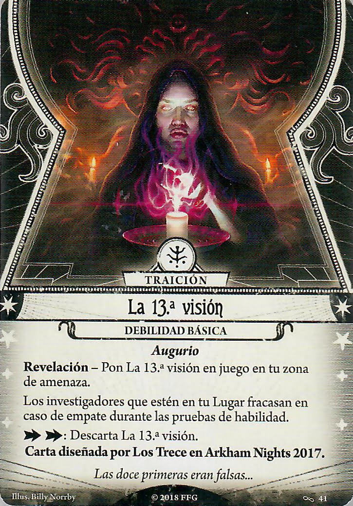 Carta diseñada por jugadores para putear a jugadores. Las similitudes con Embrujado son obvias, aunque el hecho de afectar a todos los jugadores del lugar pone por delante a La 13ª visión. Aún así no es ni de lejos de las peores y se nota que hemos sido buenos con nosotros mismos.