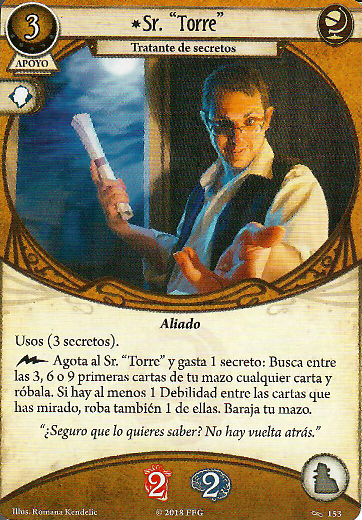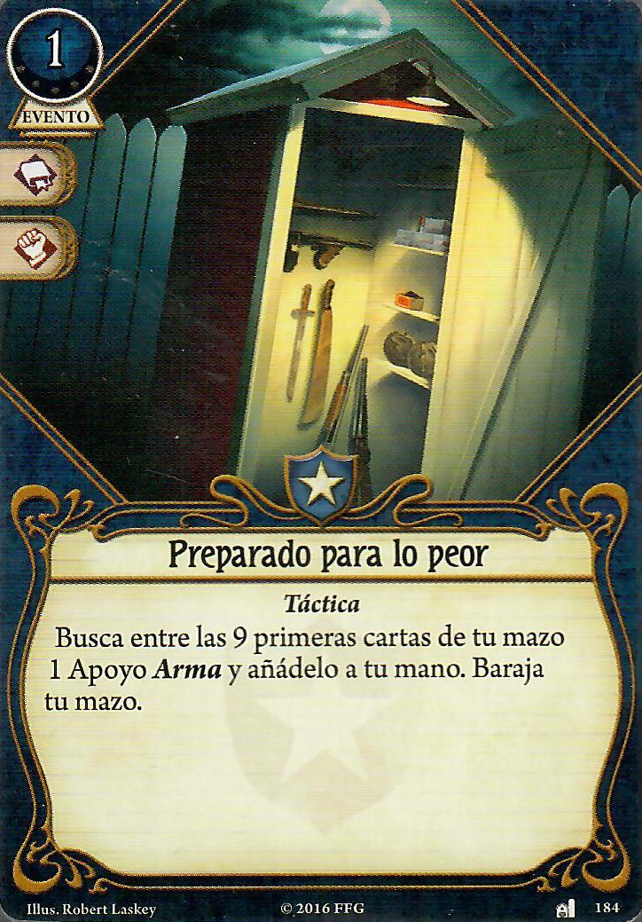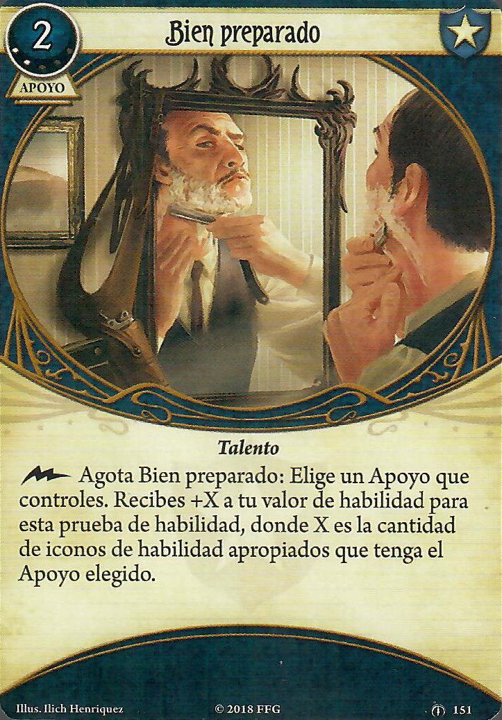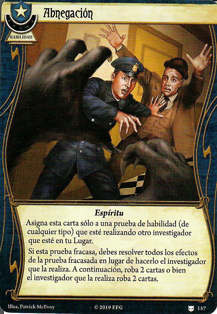 - Mazo de encuentros: Si tienes poca cordura necesitas más Voluntad. Si tienes poca salud necesitas más Agilidad. La mayor parte de las veces se cubre esto con cartas de habilidad que te den muchos iconos o con cancelaciones más que incluir boosts pasivos específicos para ello. En este caso, lo adecuado es poder subir esa característica cerca del 6 de forma temporal.