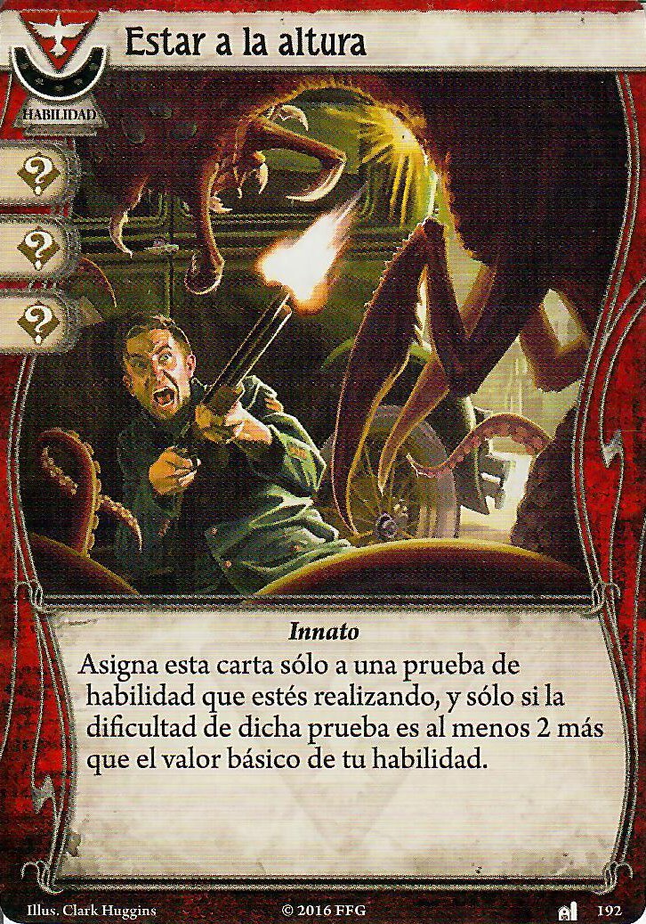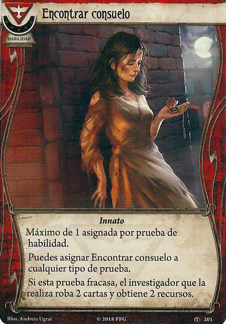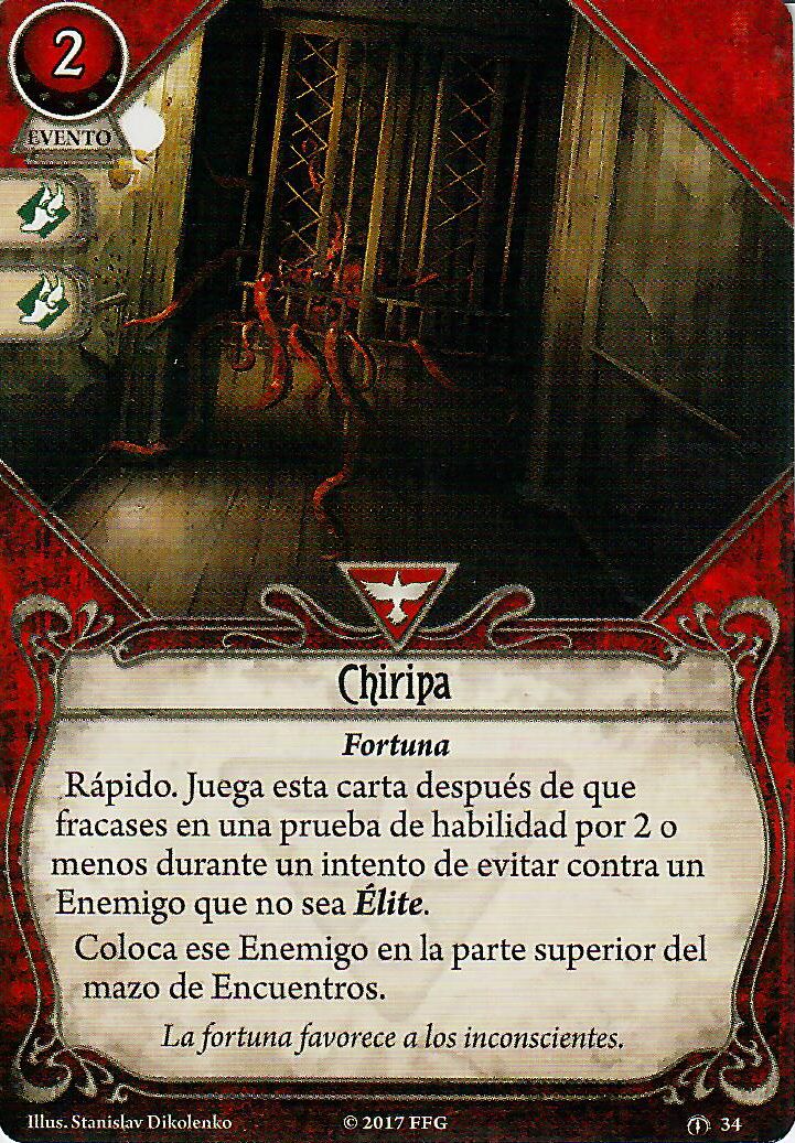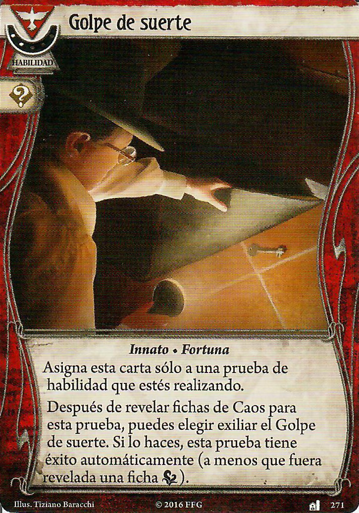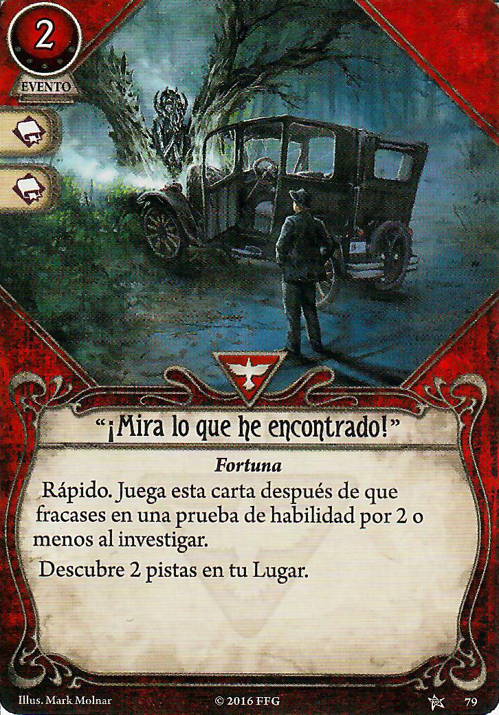 Pero realmente en el apartado de investigación, combate y evasión no solo se ve apoyado por las cartas de rebelde. En este aspecto, la clase de superviviente le puede apoyar muy bien, con cartas como «¡Mira lo que he encontrado!», «¡Ups!» o Chiripa. De nuevo, todas estas cartas tienen muy buenos iconos y no se van a quedar atascadas en la mano. Además, la primera y la segunda tienen versiones de nivel 2 para las que merece mucho la pena invertir puntos de experiencia.