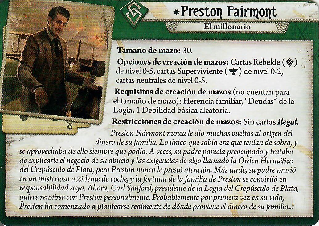Como he mencionado antes, Preston no es el investigador más fácil, pero no es para nada tan difícil como puede parecer de primeras. Desde luego no recomendaría jugarlo a un principiante, pero una vez sabes más o menos como marcha el juego, es un investigador súper interesante.