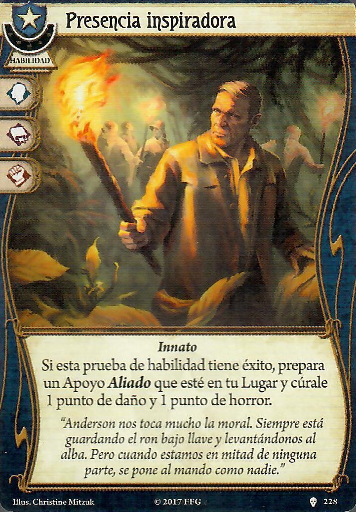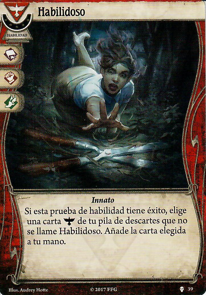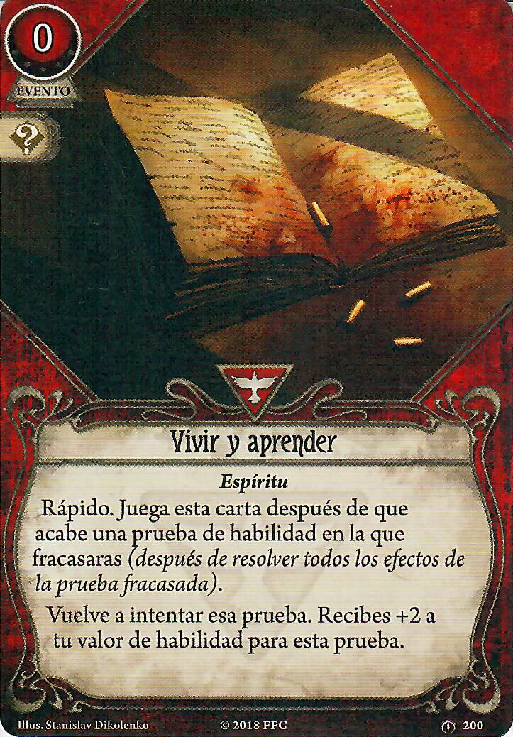 Un escalón por debajo de estas tres están Prueba de fuego y Vivir y aprender. La primera está bien si necesitas un punto de versatilidad, por si alguna mecánica del escenario obliga a interactuar con una habilidad en la que no destaques. Un besito para Invisibles y sin dimensión. La segunda, teniendo tantas cartas para pasar las pruebas de habilidad, ni la metería, pero comba bien con Encontrar consuelo y por eso está aquí.